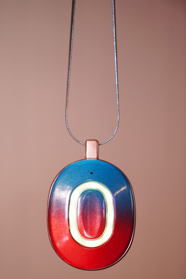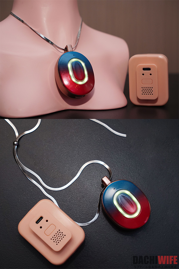 AI BOXはネックレス型のウェアラブルデザインで、自然に話しながらもスタイリッシュに装着できます